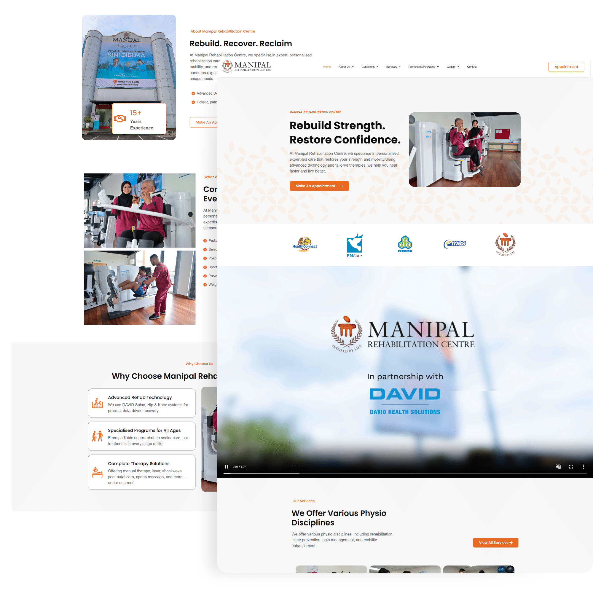 Manipal Rehab Centre, newly launched in 2024 in Melaka, is part of the Manipal University College Malaysia group. The centre focuses on delivering professional rehabilitation and physiotherapy services, supported by modern technology and expert care. To establish a strong presence from the start, they engaged us in late 2024 to create awareness, highlight their cutting-edge facilities such as DAVID rehabilitation systems, and build a strong SEO footprint so patients in Melaka can easily find and trust their services online.